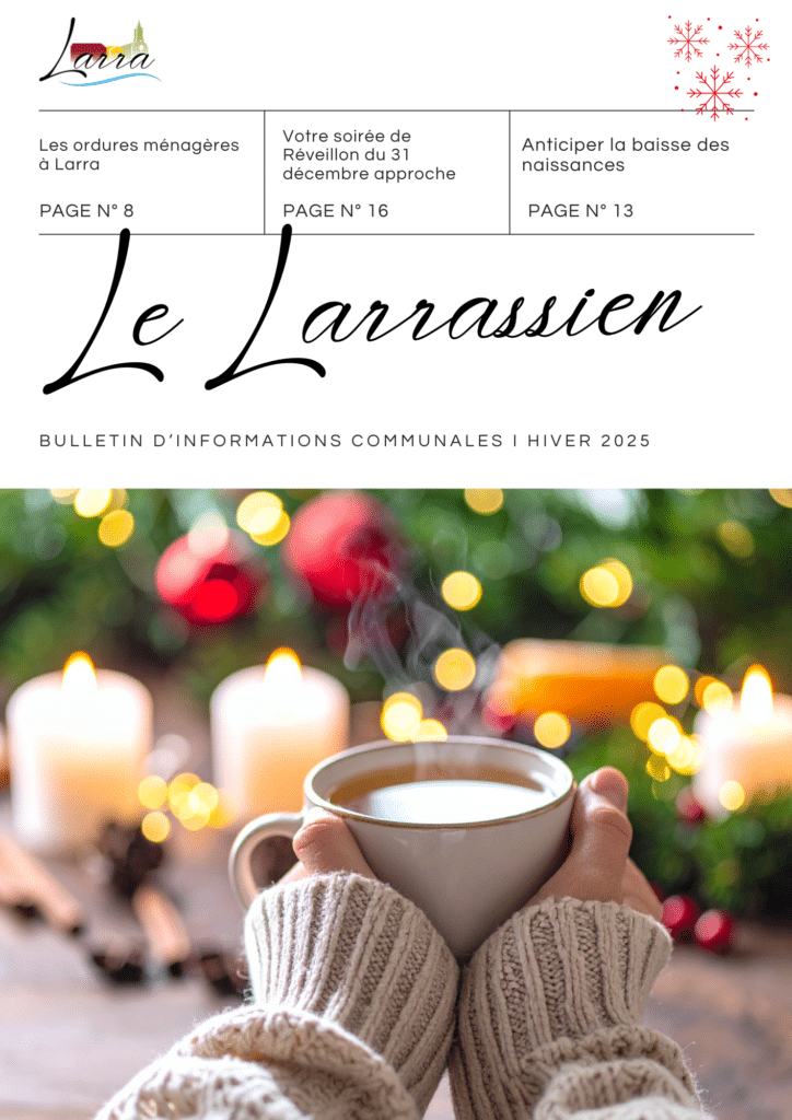 A chaque saison son Larrassien, retrouvez les actualités communales en version numérique mais aussi en version papier disponible à la mairie, à la médiathèque ou encore chez vos commerçants.